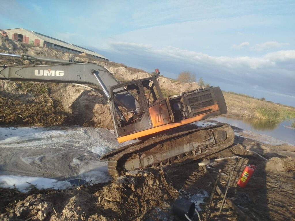 Экскаватор «UMG E225C», 2022 г. в., принадлежит ПМК-60 филиал ОАО «Пинскводстрой». На момент возникновения пожара экскаватор производил работы по обустройству мелиоративного канала.