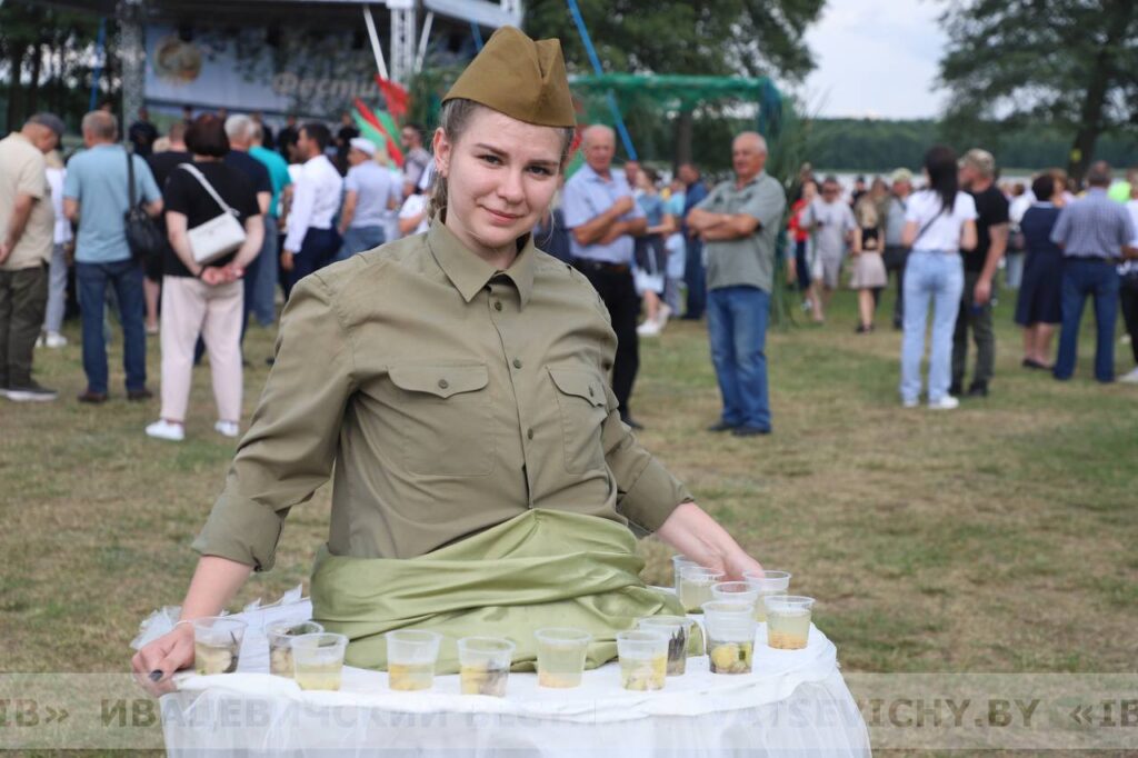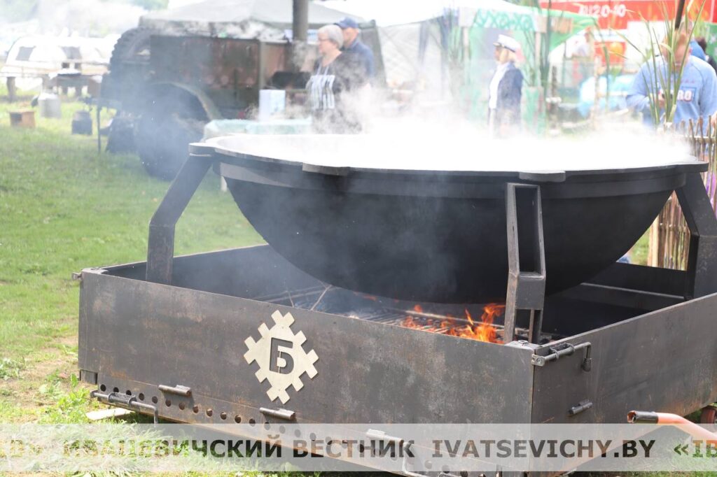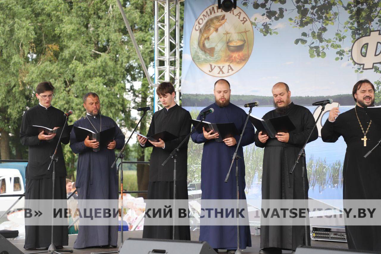Пока готовилась мегауха, гостей фестиваля радовали своими голосами и яркими номерами группа «Дрозды», Заслуженный любительский коллектив Республики Беларусь народный инструментальный ансамбль «Бриз», мужской хор «Всесвятских» Пинской епархии и творческие коллективы Ивацевичского района.