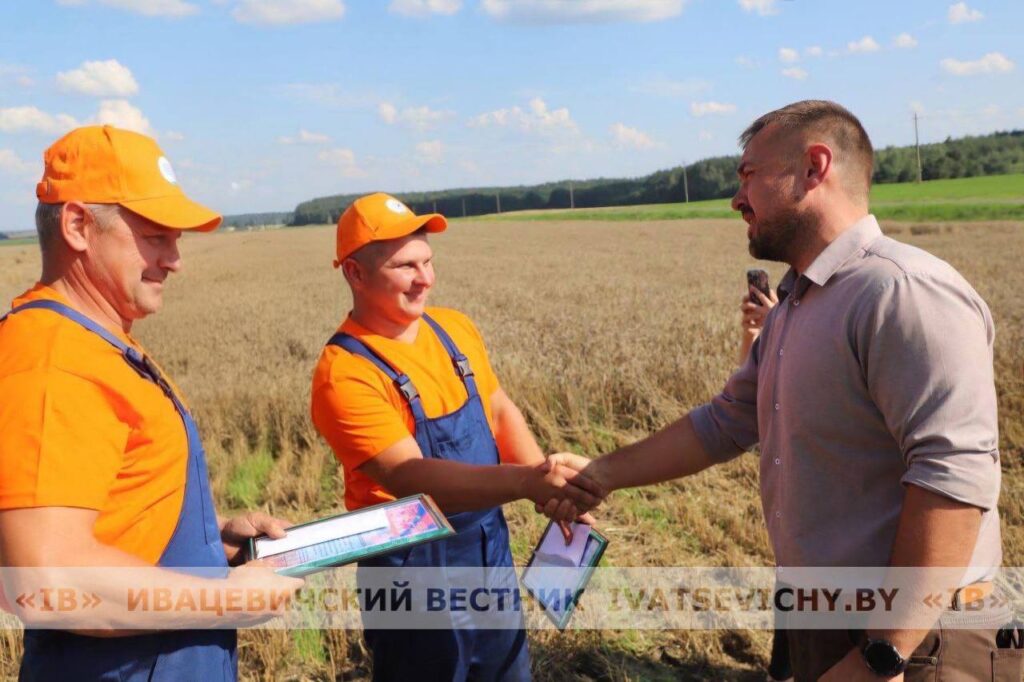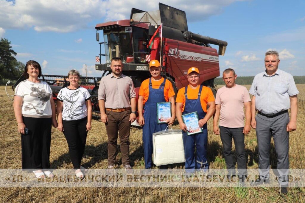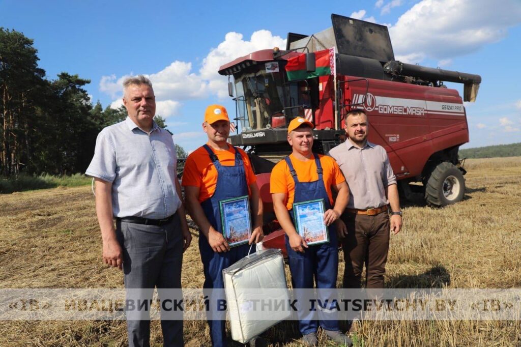 Поздравить героев жатвы и вручить им награды приехал первый заместитель председателя – начальник управления по сельскому хозяйству и продовольствию райисполкома Сергей Шемерей, председатель райкома профсоюза работников АПК Игорь Повшко, руководитель хозяйства Дмитрий Павловский и коллеги.
