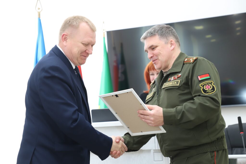 Далее начальник управления по увековечиванию памяти защитников Отечества и жертв войн Вооруженных Сил Сергей Корнев передал Грамоты и Благодарственные письма некоторым из участников семинара, среди награжденных председатель Ивацевичского раісполкома Владимир Белов и начальник отдела идеологической работы и по делам молодежи райисполкома Юлия Севко.