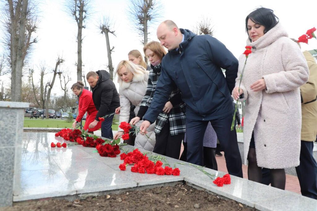 Семинар по вопросам увековечивания памяти о погибших в годы Великой Отечественной войны начался с возложения цветов к монументу на братской могиле советских воинов и партизан в сквере Победы. Председатель Ивацевичского райисполкома Владимир Белов провел для гостей краткий экскурс в историческое прошлое района возле Аллеи Памяти и памятника сожженным деревням в сквере Победы.